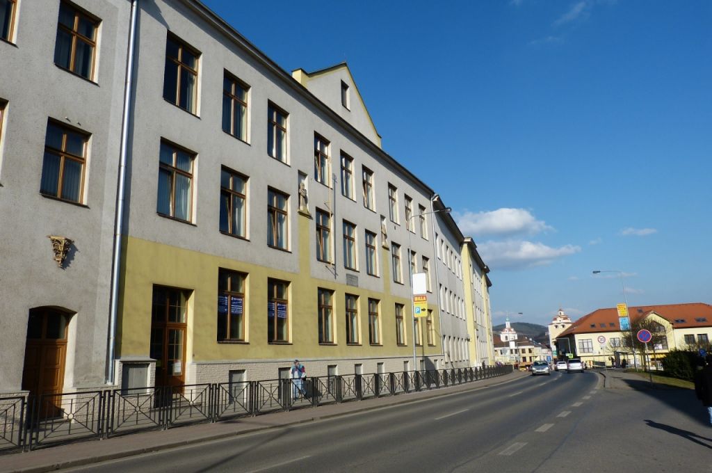 Školní budova byla postavena v letech 1883–1884. V těchto místech se v 18. století nacházel dvůr nazývaný po majiteli Šoušovský. V roce 1773 byla založena na místě dvora piaristická rezidence. Při ní byla zřízena škola o dvou třídách. Školu navštěvovali významní čeští obrozenci.
