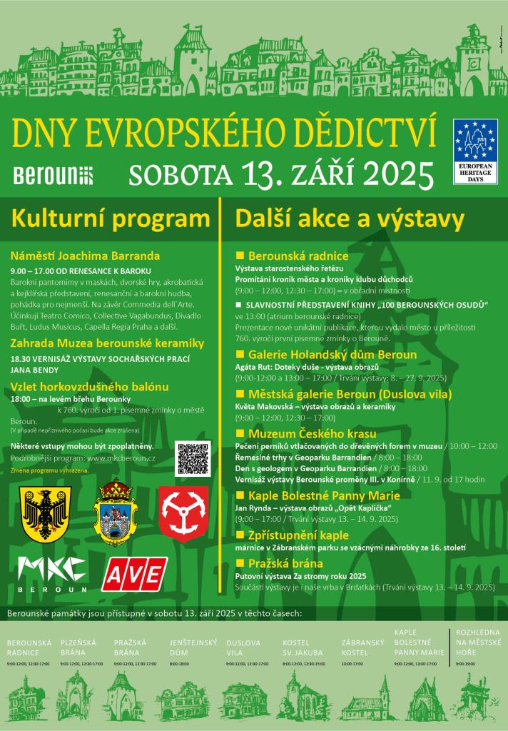- speciální programy: výstava starostenského řetězu a kronik na radnici, barokní pantomimy a hudba na nám. J. Barranda, řemeslné trhy a Den s geologem v Geoparku Barrandien, vernisáž sochařských prací Jana Bendy v Muzeu berounské keramiky