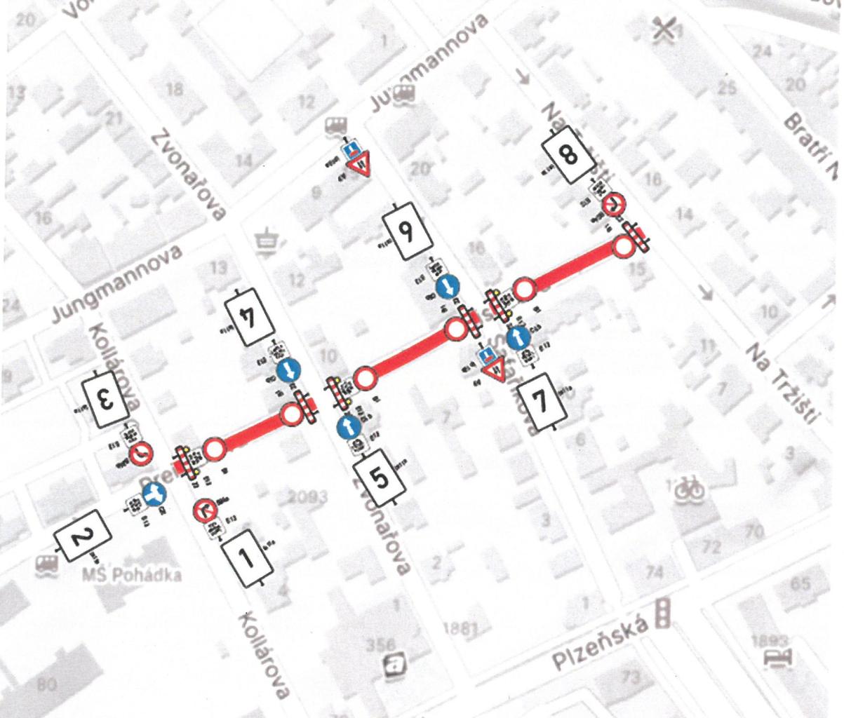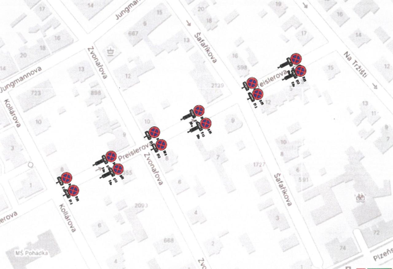 Touto částí Preislerovy ulice neprojedete. Stavební práce se nedotknou křižovatek, které budou ve směru z Plzeňské nebo z Jungmannovy ulice průjezdné.