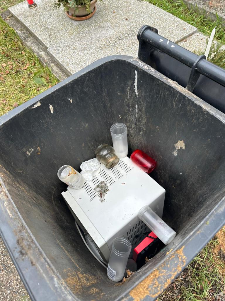 Další náš spoluobčan si zase zřejmě vykládá třídění odpadu po svém. A s vysloužilým elektrospotřebičem se nezdráhá jít i na nepravděpodobná místa… například na městský hřbitov. Právě zdejší popelnice totiž dotyčnému posloužila jako místo, kam vyhodil starou mikrovlnnou troubu. Přitom ekodvůr je doslova za rohem. Místo starých svíček, starých květin či květináčů tak hřbitovní popelnici ucpal elektroodpad. Tohle už rozumnému člověku opravdu hlava nebere.