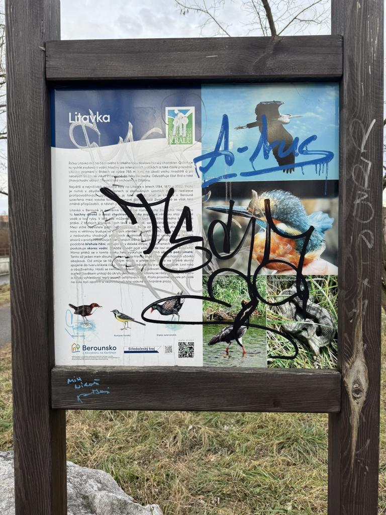 Jeden z nich instalovaný u Litavky poblíž skateparku si vybrali pro své řádění sprejeři a informace i fotografie ptáků žijících v této lokalitě překryli graffiti.