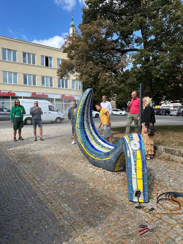 Na Husově náměstí přibyla umělecká skulptura s mlžítkem