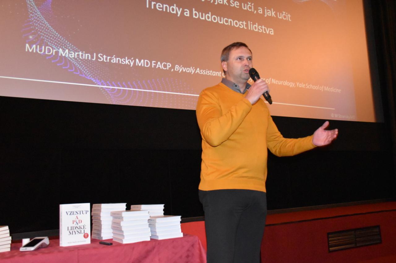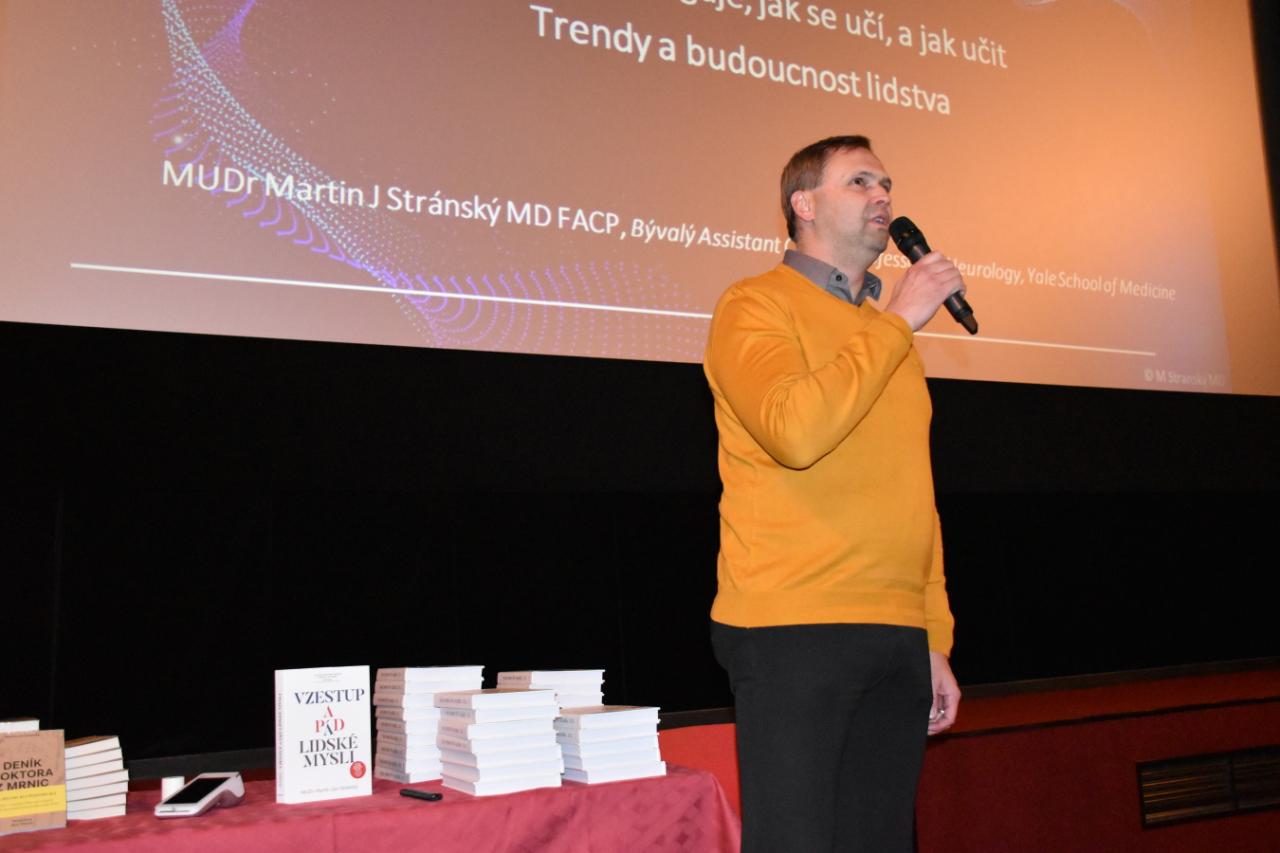 Martin Stránský, uznávaná kapacita v oboru neurologie, se dlouhodobě věnuje výzkumu neurologických dopadů moderních technologií a jejich vlivu na budoucnost lidstva. Ve své přednášce upozornil, že nové století přináší pro lidstvo nejzásadnější změny od jeho počátků. Technologie, které nám na jedné straně usnadňují život, mohou na straně druhé vážně poškozovat přirozené funkce mozku.