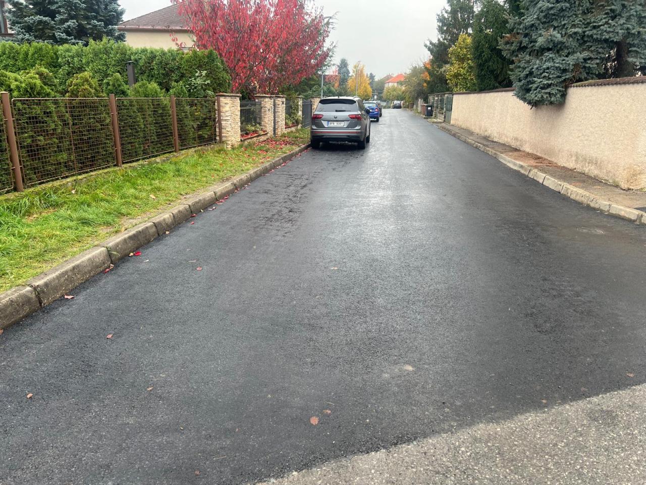 Nyní jsou již výkopy zasypány a je položen finální povrch vozovky. Čeká se už jen na dokončení technický ch spár a obnovení vodorovného značení.