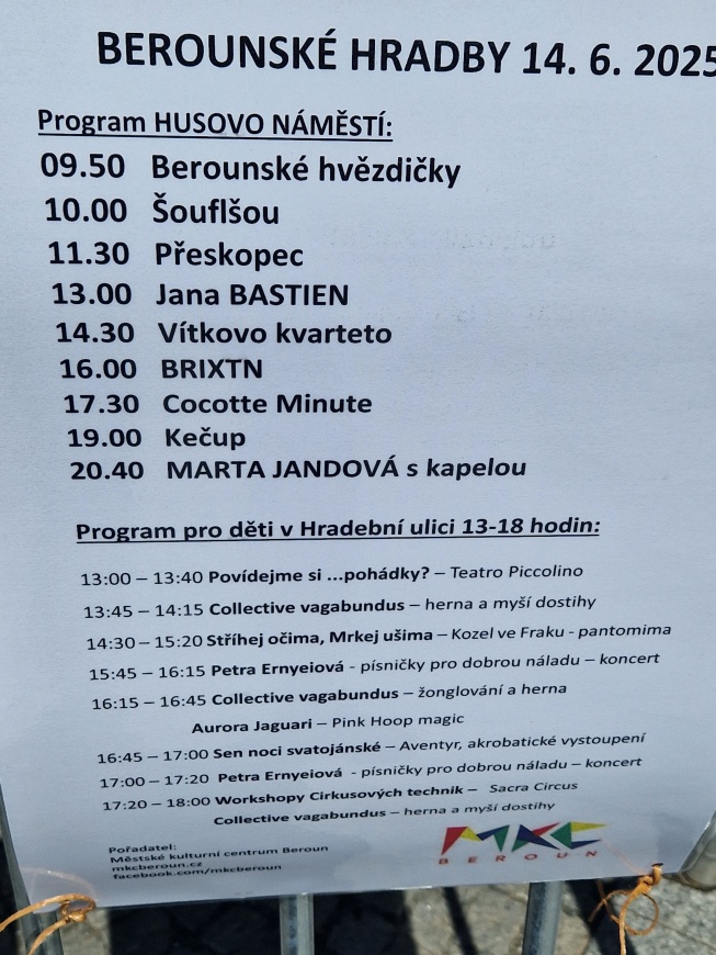 Sobota 14. června patřila tradičnímu letnímu hudebnímu festivalu Berounské hradby, který doplnily stánky pivovarů a občerstvení. V Hradební ulici probíhal program pro děti.
