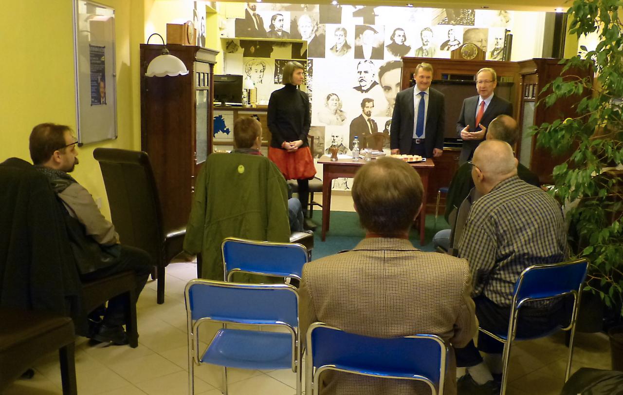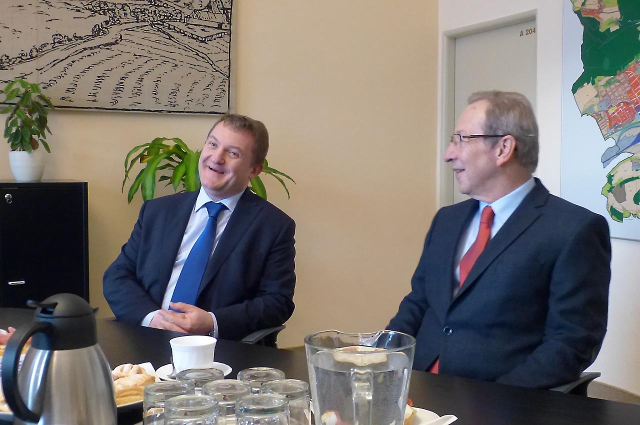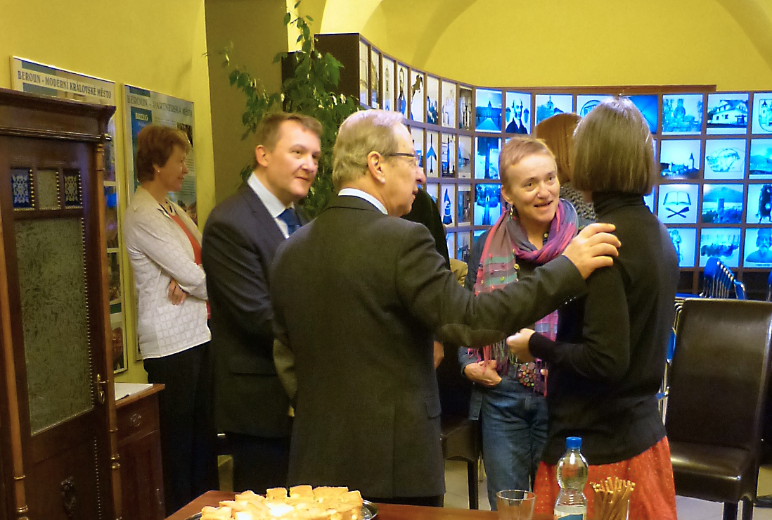 Velvyslance a jeho doprovod manžele Kuharovi před samotnou besedou na radnici přivítal místostarosta Ivan Kůs.