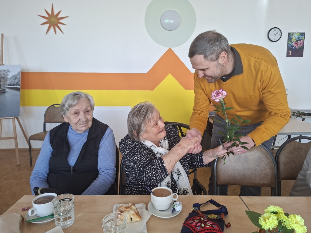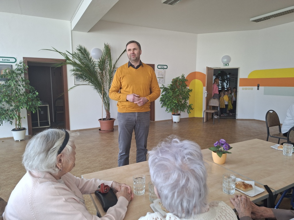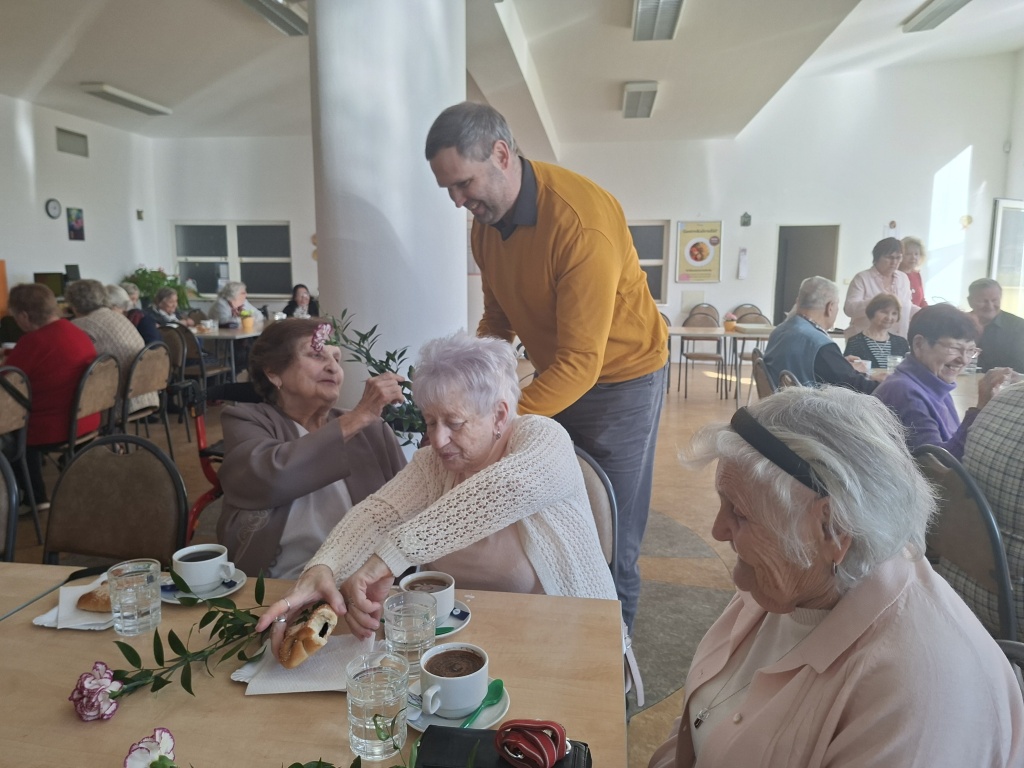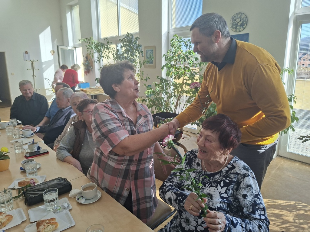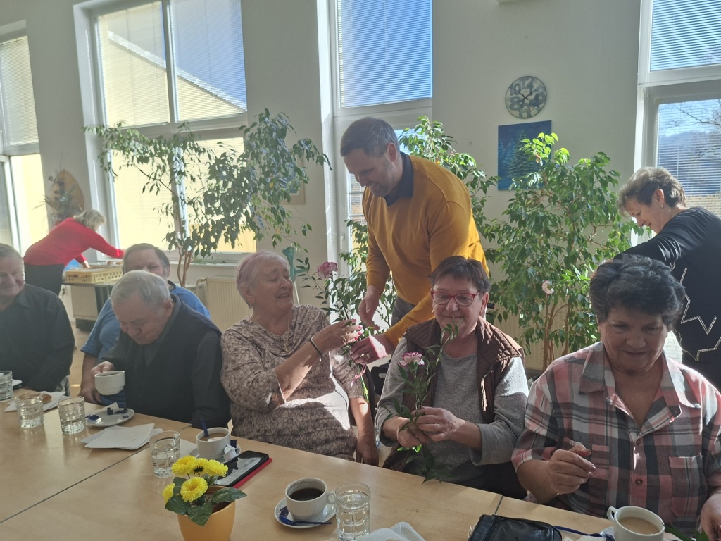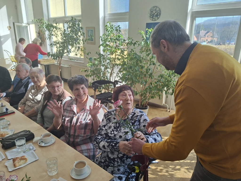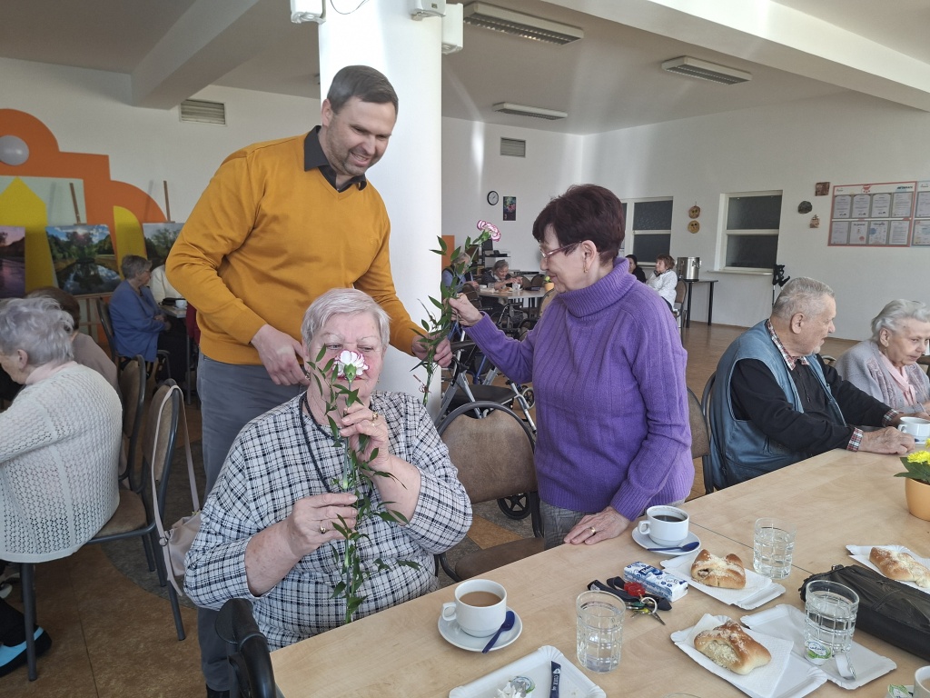 Místostarosta Berouna Dušan Tomčo přišel s květinami popřát všem obyvatelkám Penzionu pro důchodce k Mezinárodnímu dni žen. K příjemnému posezení přispělo i vystoupení dětí ze ZŠ a MŠ Preislerova.
