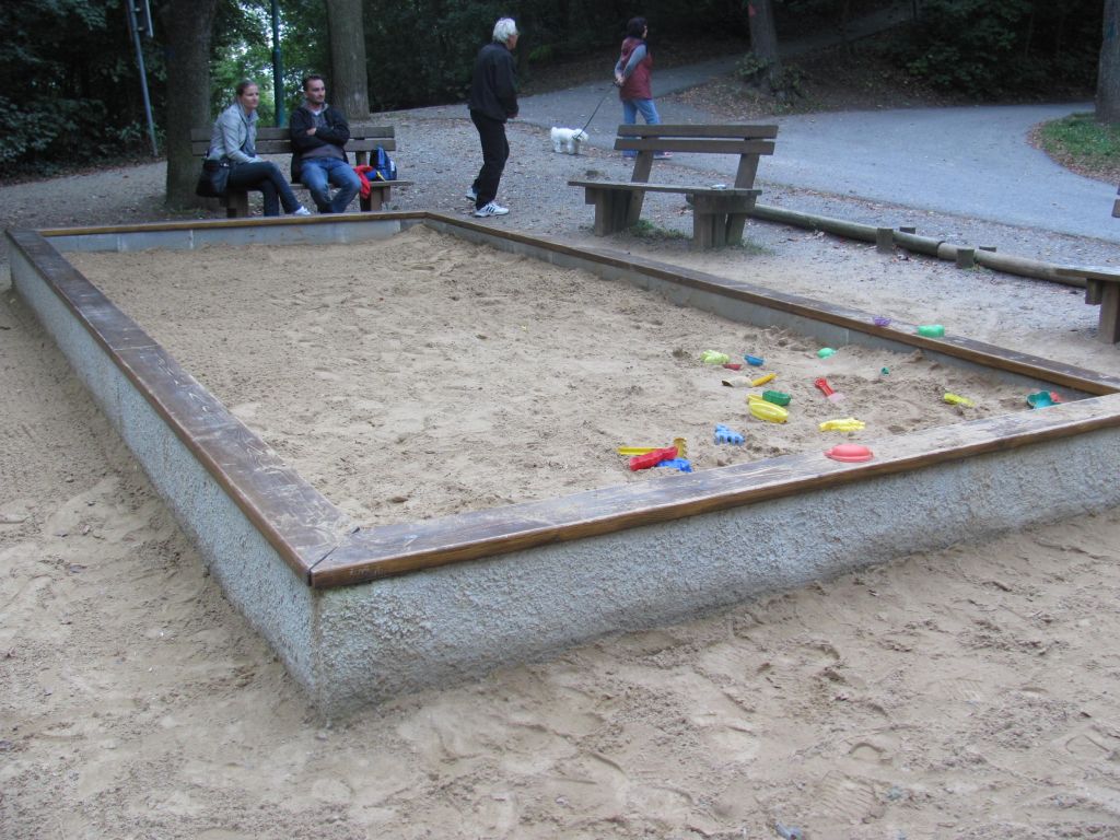 Vybavení: Houpadlo dvou-pružinové veverky, pískoviště, trubky pro přesýpání štěrku, sestava loď, 2x sestava lezecká stěna + skluzavka, houpačka, 2x houpadlo pružinové, kolotoč.